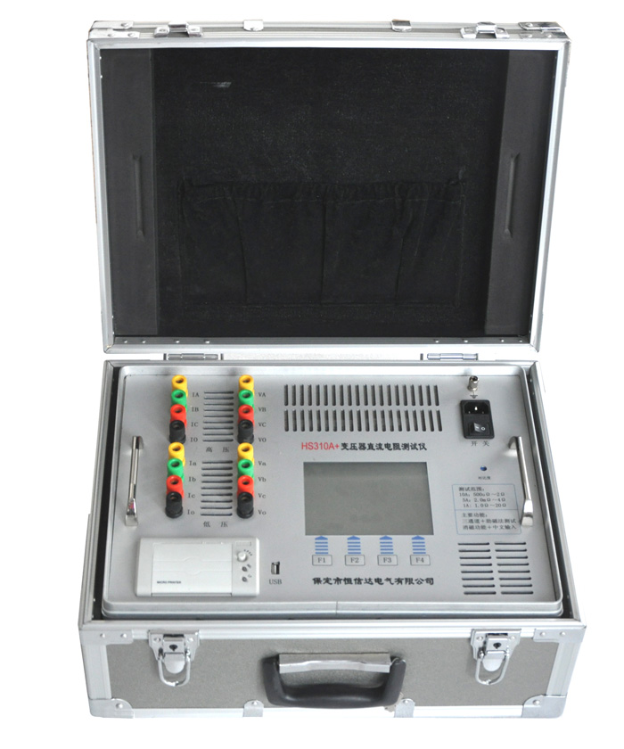 HS310A+全自動變壓器直流電阻測試儀是集助磁法測試三相同時測試于一體的快速測試儀,可測量大型電力變壓器直流電阻;而且具有消磁功能,直流電阻試驗后進行消磁,對保護電力變壓器免受勵磁涌流沖擊,和安全投運有極其重要的作用。